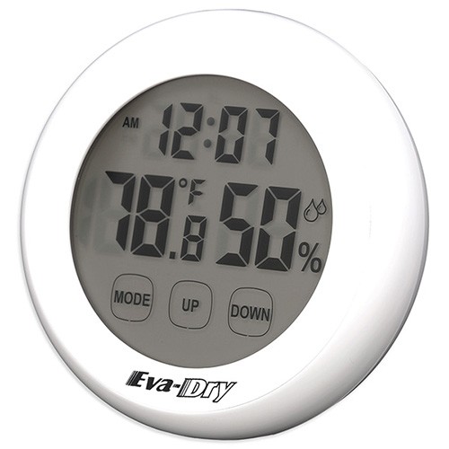 The Eva-Dry EDH-85 Hygrometer is the ideal addition to your RV, letting you see at a glance the interior temperature and relative humidity in the unit.